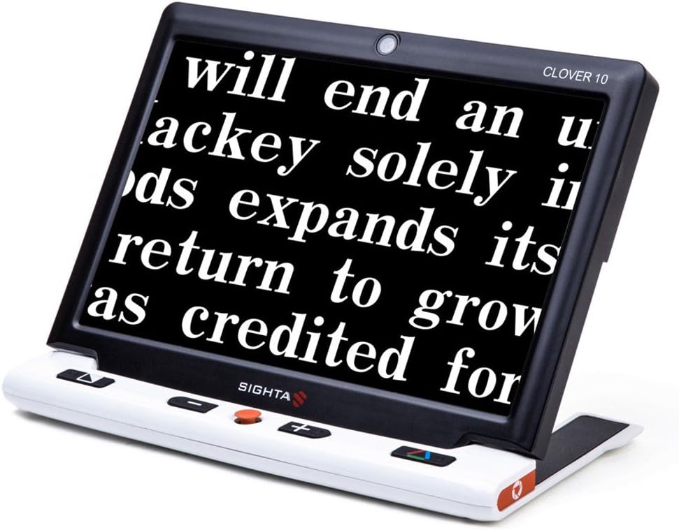 Large 10-inch wide HD display; portable, lightweight design; and integrated folding stand delivers a big-and-sharp view for low-vision users