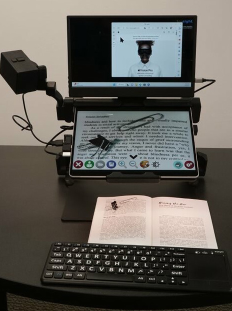 Bluetooth keyboard) and a CCTV for people with low vision. An
